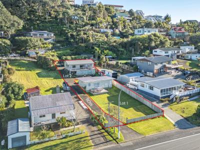 Set on a level 356m2 (more or less) section, Lot 1 features an original one-bedroom Kiwi bach full of character and holiday vibes. Open plan living, dining and kitchen area, combined bathroom and laundry, generous sized bedroom, sunny deck ideal for relaxing and entertaining and plenty of space for off-street parking, a caravan, tents, or a safe play area for kids This is a fantastic entry into the Tairua market or a classic bach to enjoy now while planning future possibilities.