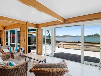 Poised on the pristine Cooks Beach waterfront with sweeping 180-degree views across Mercury Bay, this exceptional Lockwood residence offers an unparalleled coastal lifestyle. Crafted for those who value tranquillity, connection, and effortless beachfront living, this home invites you to arrive with little more than a book, good company, and the desire to unwind - everything else is already here.