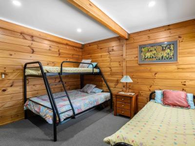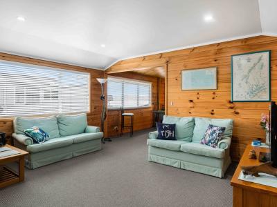 Designed across two generous levels, the home maximises its striking coastal outlook while offering multiple spaces to retreat, entertain, and relax. The ground floor features the heart of the home: a welcoming kitchen with breakfast bar, and an open-plan dining and living area orientated to capture the shimmering bay beyond. Open the doors to the expansive ocean-facing deck, the perfect stage for long summer lunches and sunset gatherings.