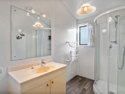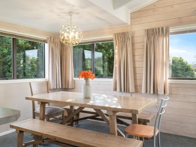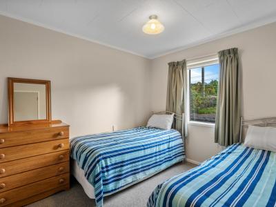 Upstairs, light filled open plan living with raked ceilings flows to a generous deck with glimpses through to the Mercury Bay, perfect for long summer evenings and barbecues. A well appointed kitchen anchors the space, complemented by a master suite with walk in robe and ensuite, plus two additional double bedrooms and a family bathroom with a separate toilet.