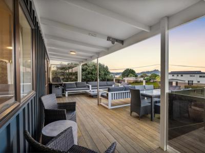 Set just moments from the beach, this spacious five bedroom home captures the essence of relaxed coastal living with room for the whole family and more. Positioned on a sun soaked corner site in the heart of Cooks Beach, it offers modern comforts, effortless entertaining spaces and plenty of coastal charm.