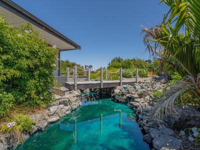 Outside, the property continues to impress with extensive decking that provides phenomenal open-air living spaces. There is a dedicated semi-alfresco area that invites you to relax amidst the sounds of nature, while the picturesque waterfall pond, with a charming walking bridge, adds a whimsical touch to the established gardens. The many outdoor spaces offer a serene environment perfect for leisure, family gatherings, or simply soaking in the beauty of your surroundings.