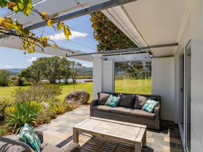 Natural light floods in, thanks to the north-facing ranch-sliders and windows that ensure a bright and welcoming atmosphere throughout the day. The thoughtful combination of slate and carpeted flooring adds a tasteful touch, enhancing the home's comfortable ambiance.