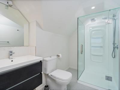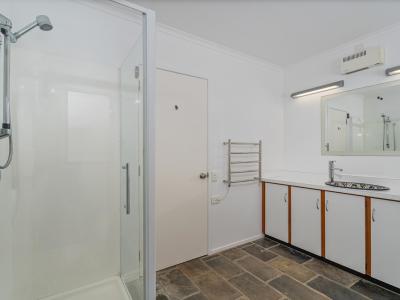 The balance of the ground floor features the master bedroom with ample wardrobe storage, en-suite; another double bedroom, main bathroom, and office. The first floor expands on the family/guest areas, with a lounge/media room, and two double bedrooms, each with an en-suite (Please note that this floor and its associated rooms do not have permits or consents from Council).