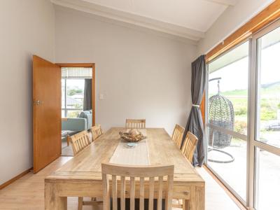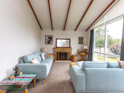 As you enter through the slider door, you'll find a welcoming kitchen and dining area that sets the tone for the rest of the home. This space seamlessly flows into a spacious living room, filled with an abundance of natural light. It's the ideal spot for both relaxation and entertaining, especially during the cooler months when the woodburner fire creates a warm, cosy ambiance. The home is equipped with an HRV system, ensuring a comfortable environment all year round.