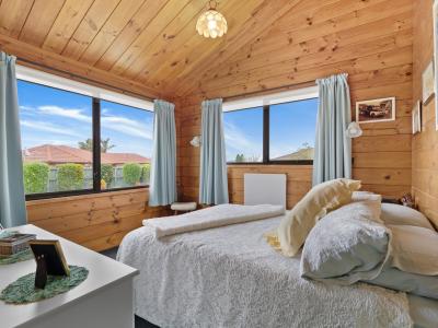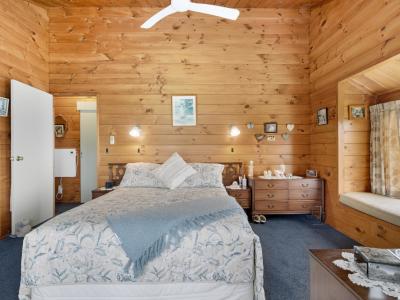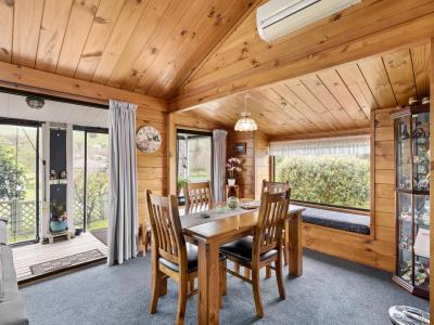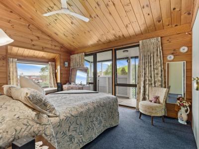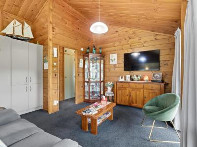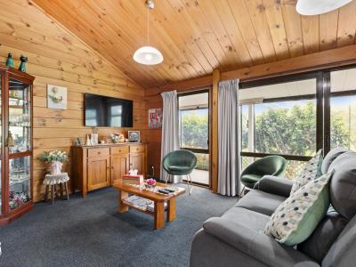 Stepping outside, you will appreciate the unique charm of this Lockwood style home set on beautiful grounds with a fantastic selection of fruit trees. The property is fully fenced, providing both security and privacy. The expansive decking plays host to delightful outdoor living spaces enhanced by PVC curtains. This feature allows for year-round enjoyment, whether you're hosting summer barbecues or simply enjoying a quiet morning coffee while taking in the lovely views and outlook this property offers.