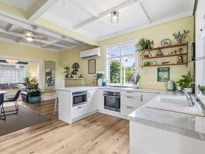 Upon entering, you will be greeted by a lovely light and bright interior that instantly evokes a sense of warmth and homeliness. The modern open-plan kitchen is a highlight of the home, equipped with contemporary fixtures and ample space for cooking and family gatherings. The layout flows seamlessly into the living and dining areas, making entertaining a joy. Stay comfortable year-round with the heat pump and a wood burner, ensuring that even the chilliest evenings are cosy and inviting.