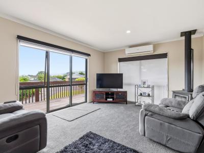 As you step inside, you are greeted by a spacious open-plan living area that exudes a warm and inviting atmosphere with both heat pump and wood burner to keep you cosy year round. The layout is brilliantly designed to maximise space and natural light, ensuring a bright environment throughout the day. The heart of the home is the living area, which flows seamlessly into the dining and kitchen spaces—ideal for entertaining guests or enjoying family time together.