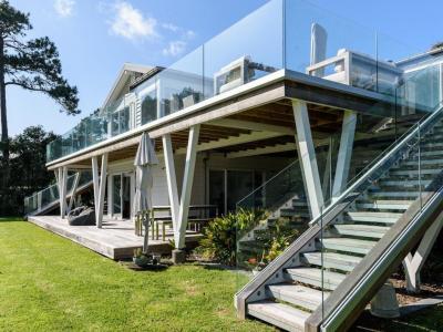 Step out onto the expansive upstairs balcony, which runs the full width of the house. Here, you'll find a Weber BBQ, alfresco dining table, comfortable outdoor seating, and two large umbrellas for shade--the perfect setting for long lunches or evening sunsets by the ocean.