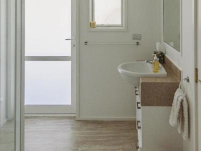 From here, step out to the lower deck, where another dining table provides a more intimate setting for relaxed meals by the garden and beach. Enjoy a warm outdoor shower after you've enjoyed the ocean.