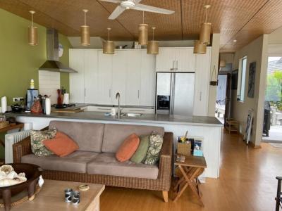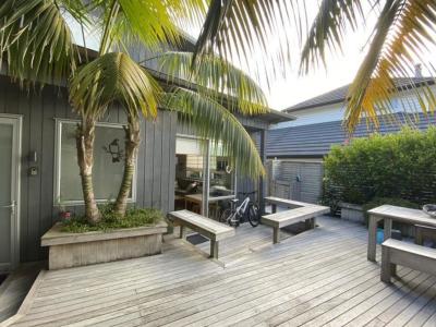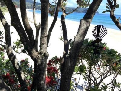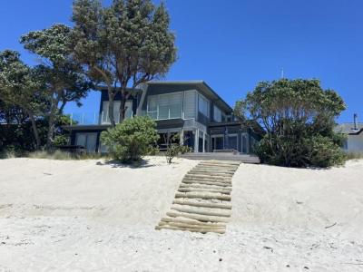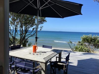 This Whangapoua duplex (attached to another dwelling) consists of a main house plus a self-contained studio, which can sleep up to 8 guests in total. The beach front deck gives access directly to the beach with a spacious area to soak in the sea views.