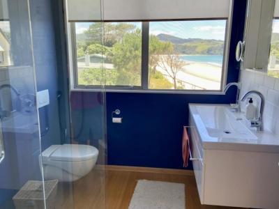 There are 2 bedrooms located upstairs in the main house, each with an ensuite bathroom. the master has a Juliet balcony to wake up and soak in the fresh air while taking in the stunning view of Whangapoua beach.