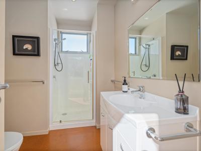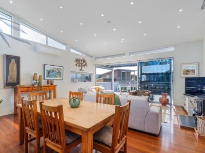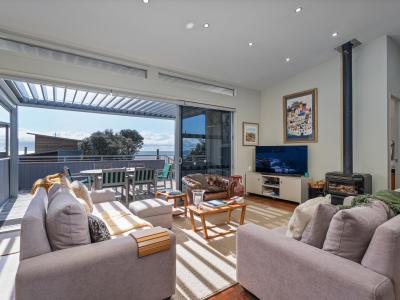 Step inside the main home and be welcomed by sun-drenched, open-plan living areas with sea views. Enjoy morning coffee or evening sunsets from the decks that flow from both the living spaces and master bedroom. The modern kitchen captures serene views of the surrounding ranges, offering the perfect backdrop to everyday life.
