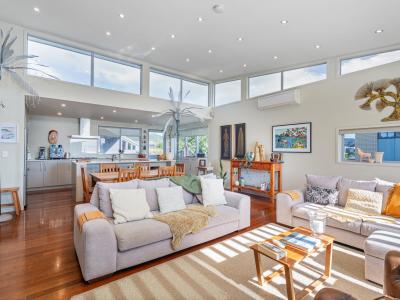 Perfectly positioned just one back from the white sands of Whangapoua Beach, this two-level beach home offers the ideal blend of relaxed coastal living and functional family comfort. Whether you're seeking a permanent residence, a holiday retreat, or a versatile dual-living opportunity, this property delivers.