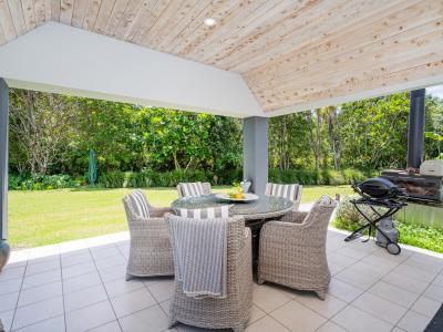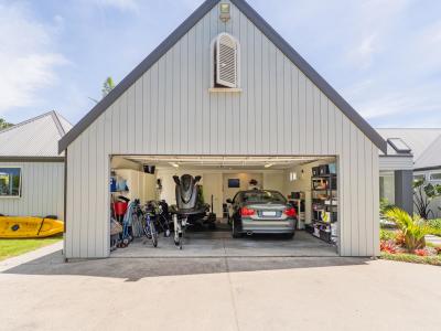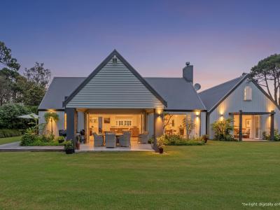 In a private 2014 m2 setting of park like grounds with mature plantings sits this magnificent 300 m2 replica home near The Dunes golf course. Featuring many design characteristics such as high ceilings, large gables, dormer windows , galley and a hidden loft to name a few. Enter into the tiled glass roofed portico and through into the warm kitchen, dining and family room which opens on the east side to a deck and on the north side to a covered β al fresco β area. Off the entry galley are 2 bedrooms, a bathroom , separate shower room and separate toilet. Head in the other direction along the galley to the master suite, internal access garage and attached sauna, pilates studio or up the stairs to the hidden loft which is in two rooms with a separate toilet in between.