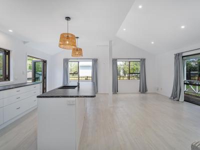 The house has upgraded features and finishes, bringing a fresh, modern feel while still embracing the charm of a classic beach retreat. A new kitchen and bathroom, laminate flooring, air-conditioning, and double glazed joinery are just some of the upgrades.