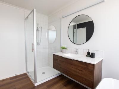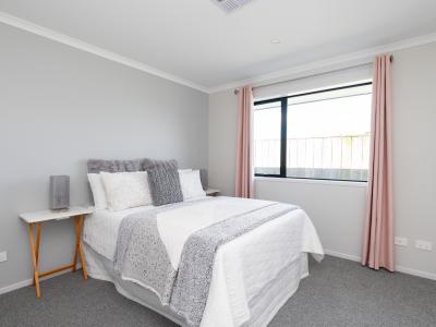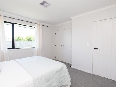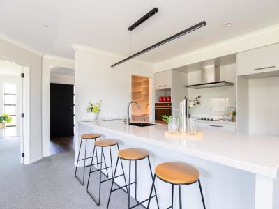 L-shaped ranch sliders flood the dining & living area with natural light & open to a covered rear deck — a fantastic spot for hosting those classic Kiwi summer barbecues. A second lounge, generous in size, can be closed off from the main living area, making it the perfect media or relaxation room.