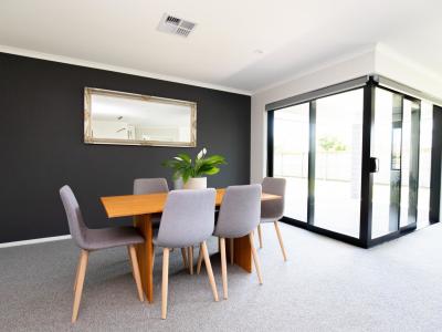 Down the hall are four well-proportioned double bedrooms, each with excellent storage. The master suite is a true retreat, complete with a walk-in wardrobe, lovely ensuite, & sliding doors that open directly to the deck & backyard. The family bathroom is simply stunning, featuring a dark wood vanity, a bathtub, & a large shower, while the separate laundry with outdoor access adds extra convenience. Central heating ensures comfort throughout the seasons.