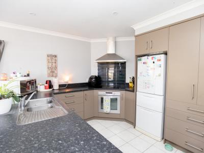 The kitchen is modern, functional, & thoughtfully designed. It features sleek black benchtops, a tiled splash back, dishwasher, & excellent storage. Nearby, stacker doors open straight onto a covered outdoor entertaining area, creating seamless indoor-outdoor living. The side yard is well fenced, simple to maintain & offers plenty of flexibility for play, pets, or a quiet retreat.