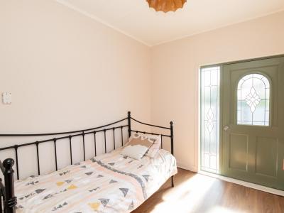 Recent updates have enhanced the home's welcoming feel while still celebrating its classic 1950s charm. Fully rewired & repainted inside & out, the home features an open-plan kitchen & living area designed for everyday life. The kitchen, replaced around six months ago, includes a stove, fantastic storage, & a dishwasher, with new lino underfoot. The living area flows effortlessly from the kitchen & is kept comfortable year-round with a heat pump & ceiling fan. Off the lounge, a versatile space opens via a bi-fold door - The perfect office, playroom, or second living area. A door with gorgeous decorative glass leads from here to the outdoors.