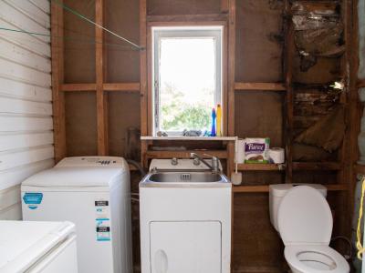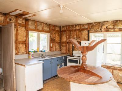 If you enjoy a challenge and rolling up your sleeves, this is the perfect do-up. Ranch sliders open from the deck into the open-plan kitchen, dining & living area, with a generously sized lounge warmed by a freestanding fireplace. The kitchen is unfinished, with a partially installed second-hand kitchen and electric stove, ready for your personal touch. Renovate what's here, reconfigure the layout, or start entirely from scratch.