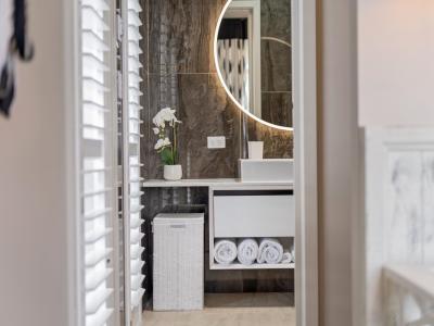 Inside, the open plan kitchen, dining, and living areas are designed to maximize light, space, and those stunning coastal vistas. The home features three generous bedrooms, including a master suite with elegant ensuite, a family bathroom, and a separate powder room.