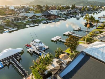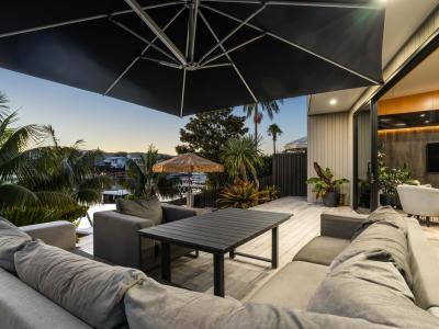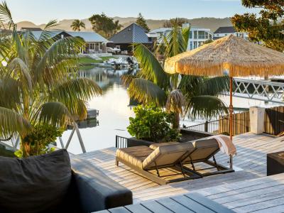 Right on the Pauanui Waterways, and the indoor-outdoor flow is just amazing.....wraparound decks, fully landscaped gardens.....it's like the whole house just breathes summer!