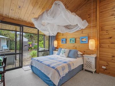 Outdoors, the western side of the home unfolds into a charming al fresco cobbled zone lovingly referred to as “The Beer Garden.” It's easy to see why—this sheltered, sun-kissed space is ideal for relaxed gatherings. A sleepout, affectionately known as “the cabin”, cobbled BBQ area, and garden shed complement the outdoor offering.