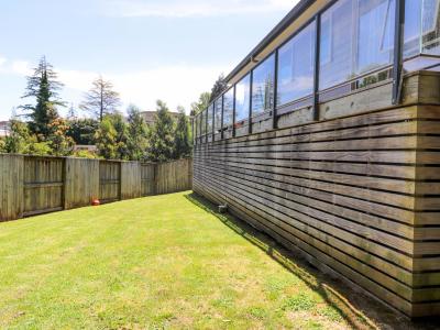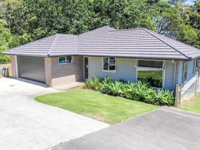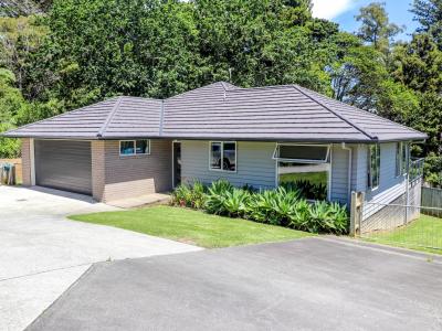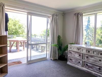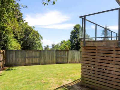 The home offers three double bedrooms and two bathrooms, including a master suite with an en-suite and walk-in wardrobe for added privacy. The main bathroom features a bath, separate shower, toilet, and vanity. The open-plan living spaces flow seamlessly onto a deck with glass balustrades, capturing beautiful views. A modern kitchen includes a wall oven, rangehood, and dishwasher. With double-glazed aluminium joinery, a heat pump, and an internal-access double garage, this home delivers comfort and practicality.
