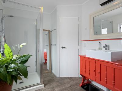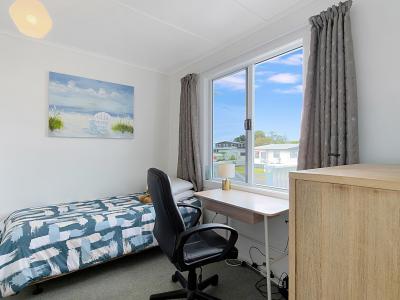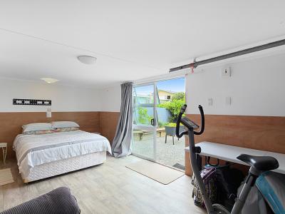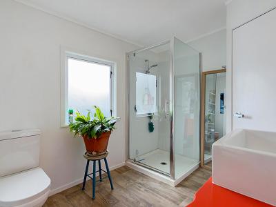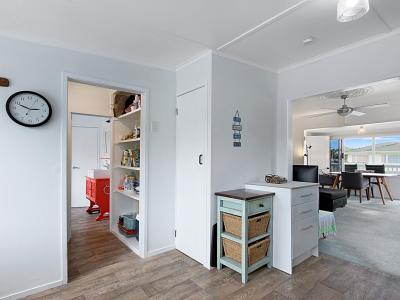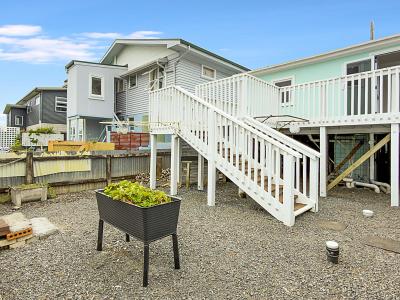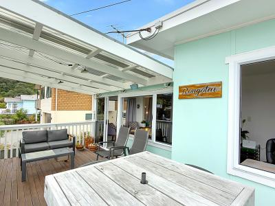 The Bach has been lifted, providing excellent storage underneath for fishing gear, kayaks, or beach toys. It blends original charm with modern comforts, featuring aluminium joinery and a heat pump to keep things comfortable year-round. Decks at both the front and back create fantastic indoor-outdoor flow, giving you plenty of space for family meals, relaxing in the shade, or keeping an eye on the kids. With two bedrooms and a bathroom that also connects to the master bedroom, this property has a practical layout.