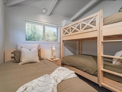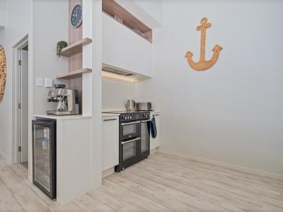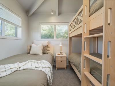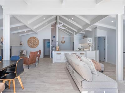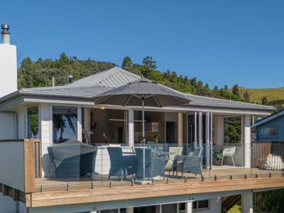The main suite is located on the ground floor and is of opulent size with ensuite and walk-in wardrobe. Let the French doors entice you out for morning beach walks without waking the rest of the house. The 2 further guest rooms on this level share a tiled semi-ensuite with external access for those times when you need to jump straight into a hot shower, that's if the outside shower on the toy garage doesn't cut it after a day's fishing in Whitianga's renowned waters!