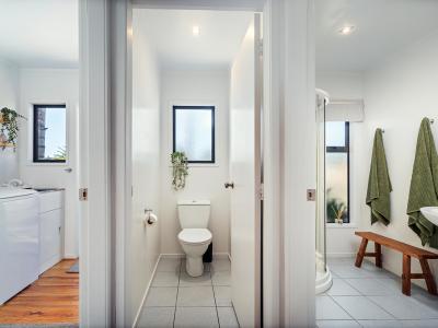 A light, bright and lovely interior leads you the main bedroom (with ensuite and W.I.W) that's located at the opposite end of the house to the main living spaces for maximum quietude and even has extra space for a private reading haven or home office.